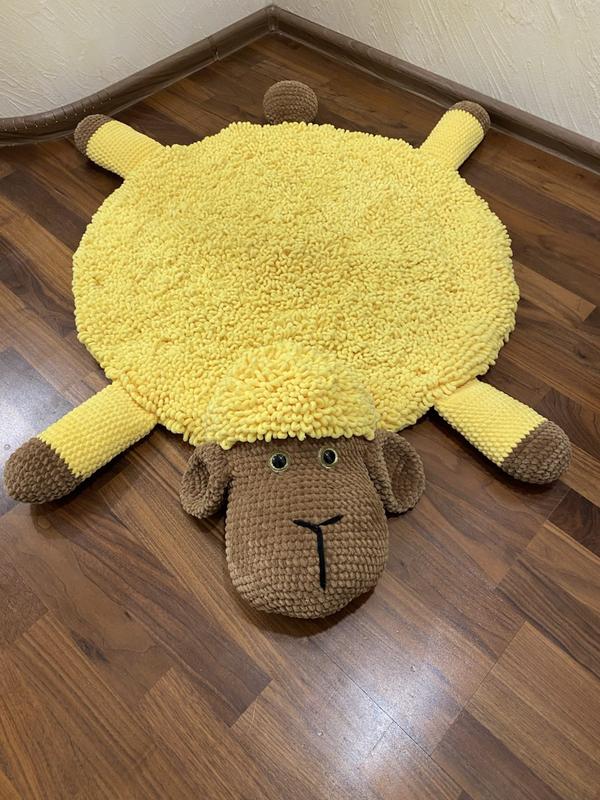 Детский плюшевый вязаный коврик Баранчик. Невероятно нежный, приятный на ощупь и очень теплый. Пряжа Alize обладает высокой теплоизоляцией, сертифицирована и является опасной для младенцев. Гипоаллергенный материал, не мнется, не электризуется. Рекомендовано от 0 до 1 года. Диаметр 90 см, 115 см с головой.