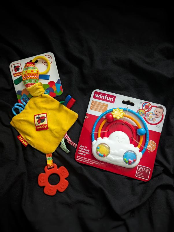 Игрушки для самых маленьких деток, радуга на батарейках с музыкальными эффектами и прорезывателем для зубов, и шуршалка с прорезывателем, подойдут для дома и для тележка
