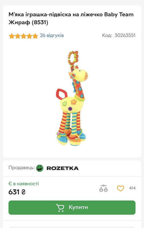 Игрушка-подвеска. Содержит пустышку зашитую в головке, колечко погремушки на шее и лапках, хвостик пропезыватели, и шуршащие зашиты в стопы жирафчика. Малышу точно будет с чем поиграть