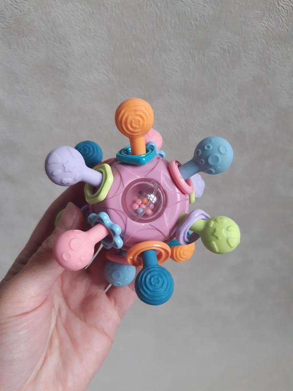 Погремушка-прорезыватель монтессори шар-атом силикон/пластик 5.5х4.4см