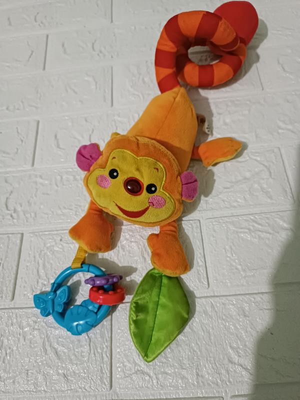 Интерактивная игрушка Обезьянка подвеска Fisher price Играет,видует звуки.Требора освежить чехол игрушки, потому что ребенок уже не играет