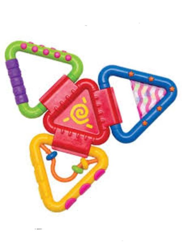 Яркий и складывающийся прорезыватель для малыша прекрасно будет масажировать десна ребенку в период прорезываания зубов, а также им можно играть как с погремушкой и складывать пирамидку. Чудесная игрушка для развития моторики и координации.