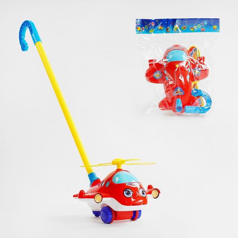 Каталка на палочке в виде веселого самолетика непременно подарит массу положительных эмоций и украсит будни Вашей крошки невероятными похождениями! Игрушка изготовлена из высококачественной первичной пластмассы и оснащена тремя колесиками, которые помогут скоординировать движения и научат выбирать оптимальный темп ходьбы. Особенности: - милый мультипликационный дизайн; - во время движения четырех лопастный пропеллер вращается и красный язычок в такт движения высовывается, а затем скрывается назад; - передние колесики оснащены звонком; - вертолет окрашен в приятные, контрастные цвета и дополнен красивыми наклейками; – высота от пола: 53 см. Характеристики и комплектация товара могут изменяться изготовителем без уведомления.