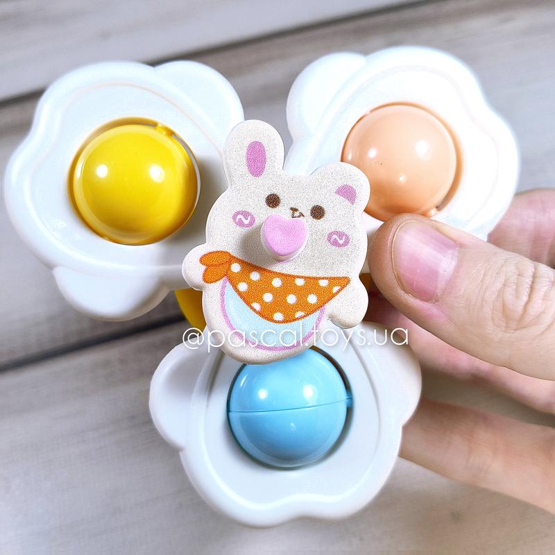 Детская погремушка спиннер на присоске "кролик" (3 лепестка), игрушка для самых маленьких