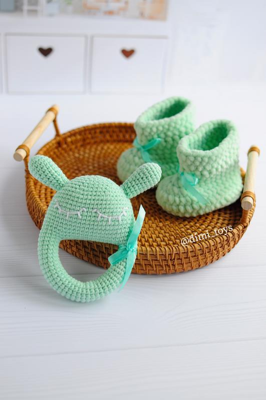 Нежный, как мамины объятия 🐰 – набор “Зайчик” создан для первых дней жизни малыша. Мягкая погремушка-грызунок помогает ребенку познавать мир путем прикосновения и звука, а пинетки добавляют тепла маленьким ножкам. Все выполнено из безопасных материалов, поэтому “Зайчик” станет лучшим первым другом вашей крохи 💞 ✨ В наборе: Брязкальце-гризунчик “Зайчик” 🧶 Пинетки 0–3 мес. 100% ручная работа, любовь в каждой петельке
