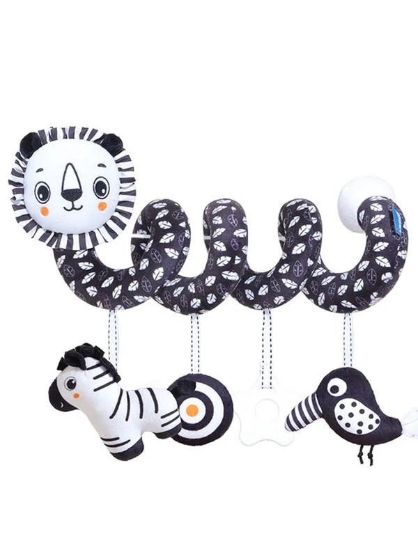 Спиральная подвесная игрушка для коляски и кроватки львёнка с друзьями - черно-белая с гры...