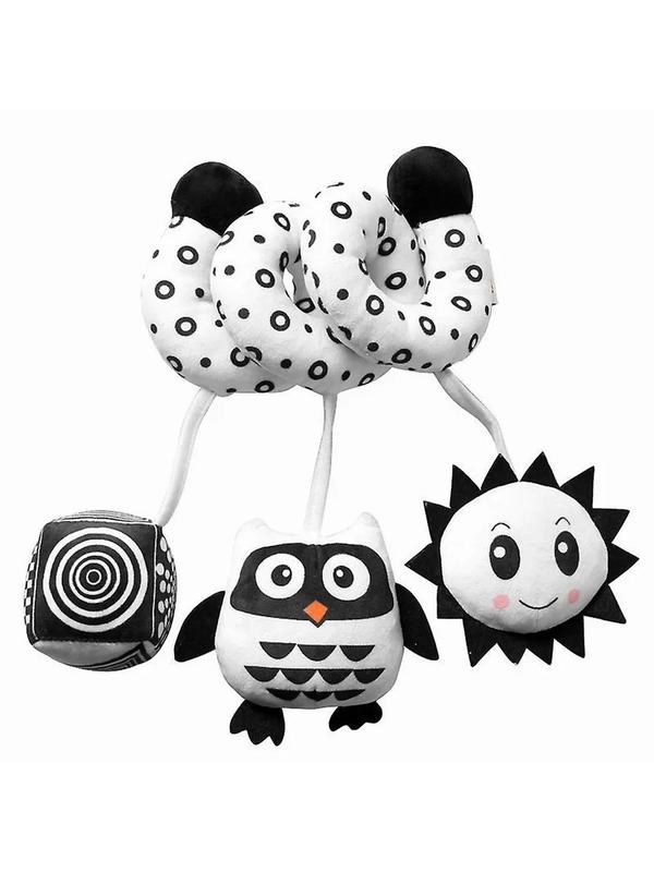 Развивающая дуга с игрушками-погремушками для новорожденных сова черно-белая