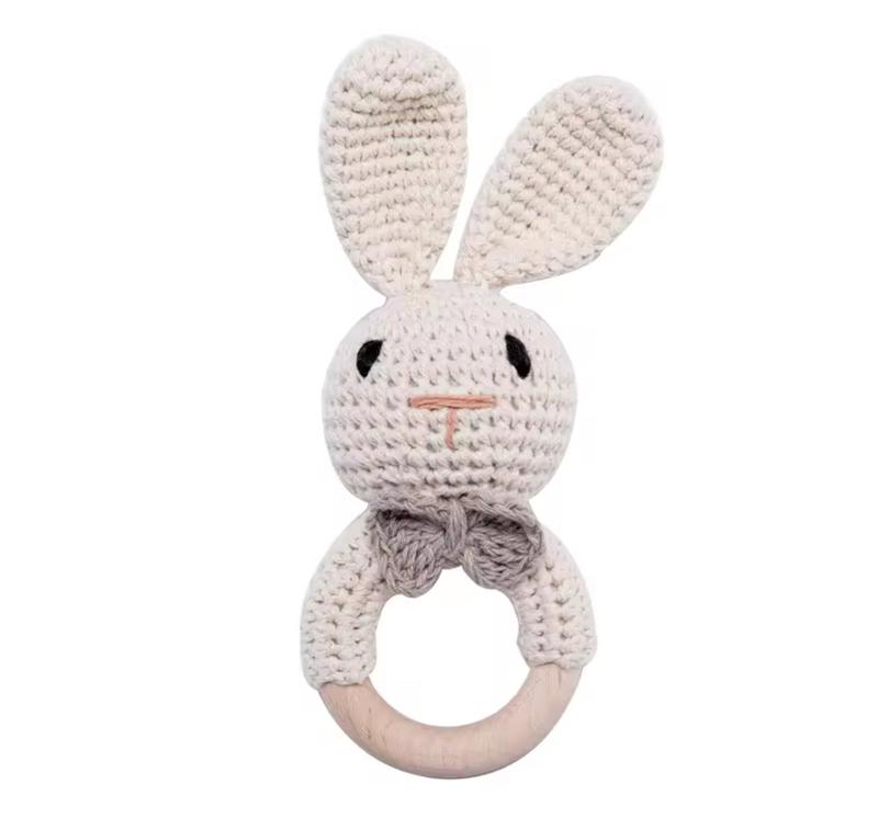 Вязаная погремушка зайка для младенцев 0+