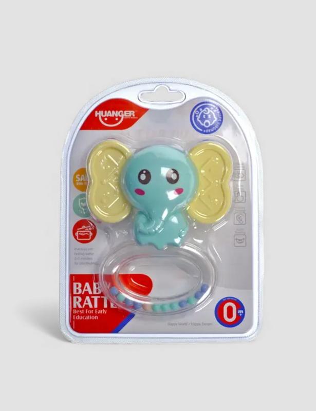Прорезыватель для зубов с погремушкой слоненок, детская игрушка 0+ (игр1294)