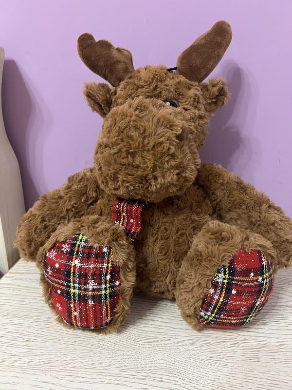 Крута іграшка лось для малюків, шарудять лапки, в ніжках піщалки, в животику теж цікавий звук при натисканні. Дуже приємний на дотик