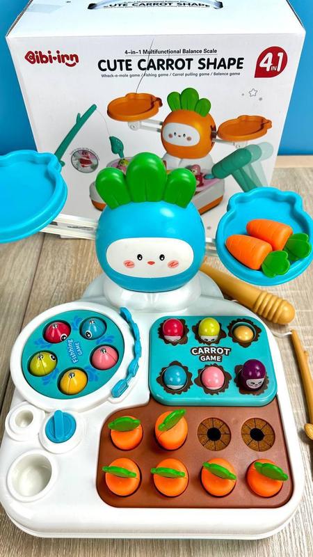 Яскравий і захопливий ігровий набір пропонує безліч функціональних елементів - кожна його сторона є окремою цікавою інтерактивною розвагою для допитливих малюків. З цим набором дитина зможе: "ловити" кротів за допомогою молоточка, садити й збирати врожай у вигляді моркви або ловити рухливих рибок магнітною вудкою. А завершальною прикрасою цієї унікальної платформи є балансир у вигляді великої моркви, яка здатна захопити дитину надовго. Особливості набору: - балансир у вигляді великої моркви, з маленькими морквинками-важелями; - магнітна риболовля з рибками та вудкою; - "ставок", який обертається під веселі мелодії; - стучалка з молоточком у комплекті; - текстильні "грядки" для висаджування моркви; - додаткові ефекти працюють від 3 батарейок типу AA (не входять до комплекту). Користь гри: Ця іграшка сприяє розвитку дрібної моторики, сенсорного сприйняття та слухових навичок. Набір стане чудовим вибором для веселих і пізнавальних ігор, які надовго зацікавлять вашого малюка! Розмір: 24 см х 24 см х 6 см.