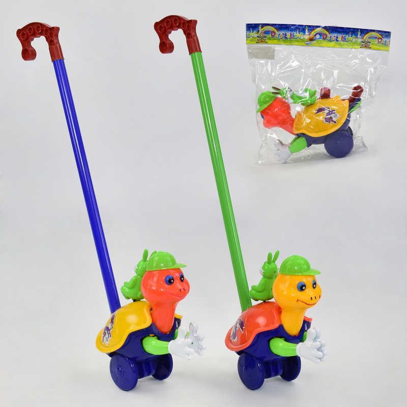 Каталка 327 (60/2) "черепашка" на палочке, хлопает в ладоши, 2 цвета, с погремушкой, в кул...