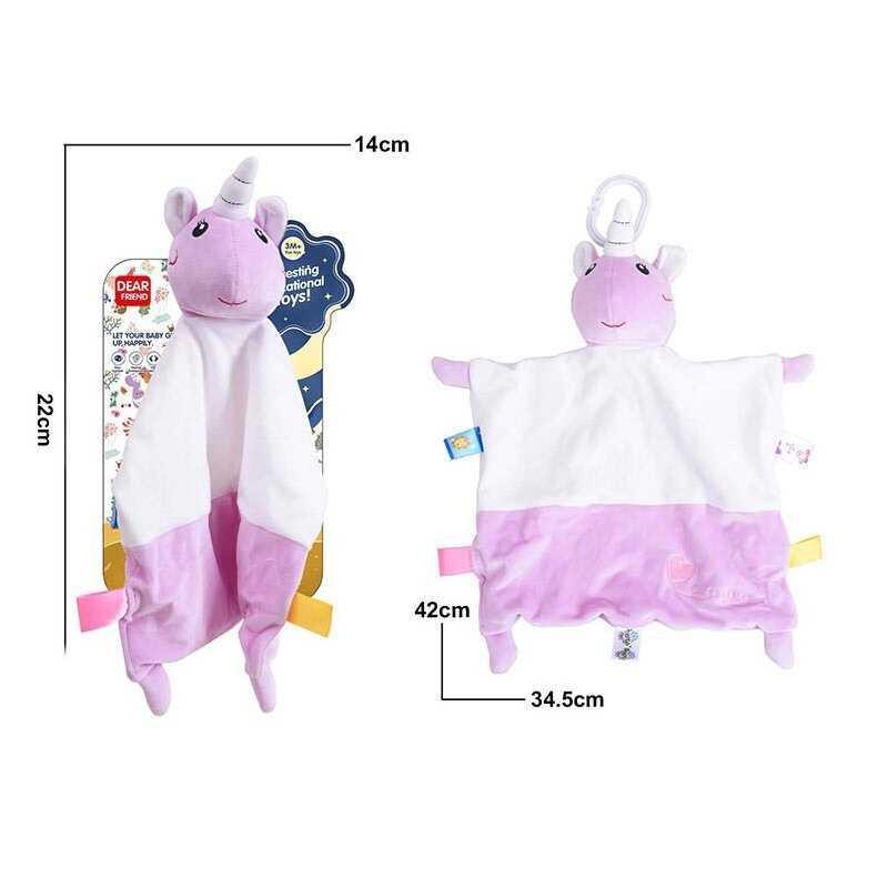 Мягкая текстильная погремушка-комфортер 688 M135 Эта погремушка-комфортер выполнена из приятного на ощупь текстиля, обеспечивающего комфорт и безопасность для малыша. Фигурка единорога с улыбкой легко крепится кольцом для подвешивания на детскую коляску, автокресло или кроватку. - Размеры: 42х34,5 см (комфортер), 14х22 см (фигурка) - Материал: мягкий текстиль - Удобное кольцо для подвешивания - Яркий дизайн в виде единорога - Безопасна для детей от 3 месяцев