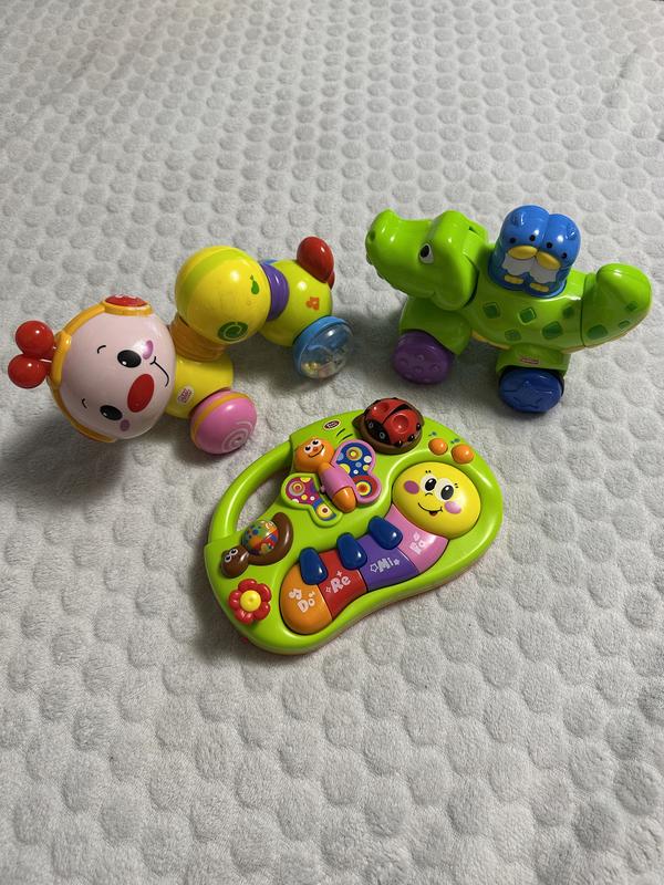 Продам дитячі іграшки набором. В наборі: каталочка fisher price крокодил, каталочка музична гусениця, дитяче піаніно з віршиками( є активні елементи).