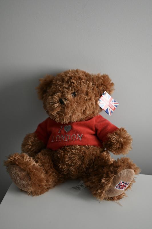 М’яка іграшка ведмедик “I ❤️ London” Чарівний плюшевий ведмедик у британському стилі стане чудовим подарунком для дітей і дорослих. Іграшка виготовлена з м’якого, приємного на дотик плюшу коричневого кольору. Ведмедик одягнений у червону кофточку з написом “I ❤️ London”, а на вушку та лапці є елементи з прапором Великої Британії, що додає особливого шарму та сувенірної цінності. Характеристики: • Матеріал: м’який плюш • Колір: коричневий • Одяг: червона кофточка з написом