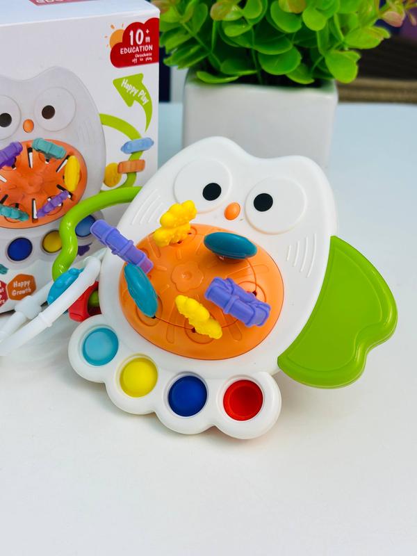 🦉 Розвиваюче брязкальце 4в1 Артикул: 2336 🌈 Яскрава іграшка для маленьких дослідників! Допомагає розвивати дрібну моторику, тактильні та зорові відчуття 👀🤲 💛 У комплекті: ▪️ пальчикова гра з кулькою ▪️ м’які гумові кульки ▪️ прорізувач для зубчиків 🦷 ▪️ фактурні шнурочки 🎀 ✔ Безпечні матеріали ✔ Приємні пастельні кольори ✔ Багато цікавих елементів для перших веселих ігор