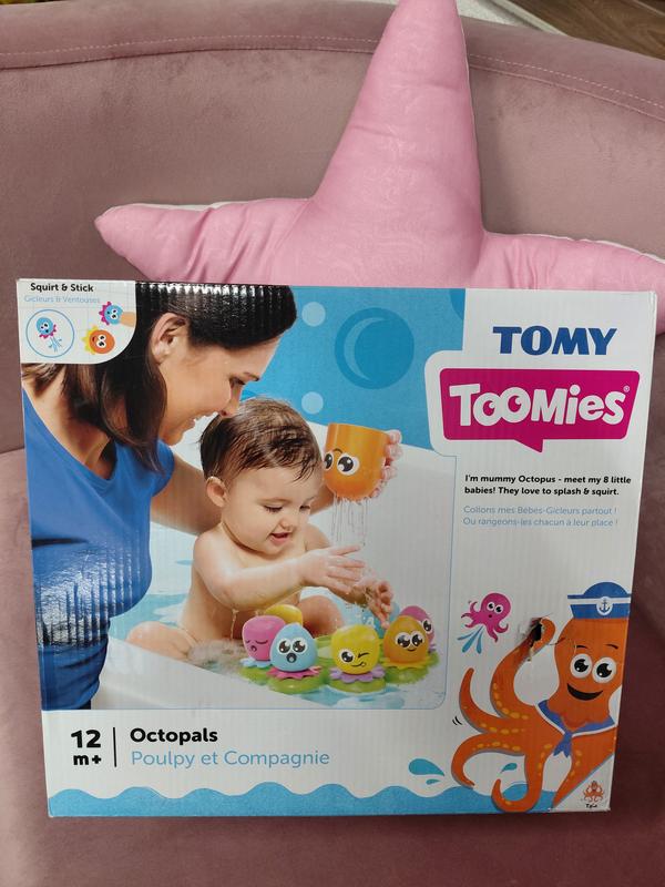 игрушка для ванны Toomies Octopals (также известна как Poulpy et Compagnie), которая состоит из плавующего острова-мами осьминога и восьми маленьких осьминогов-брызялок.