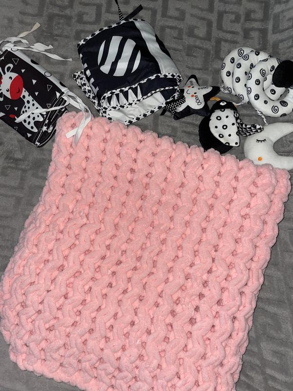 Гарна ідея подарунку для дівчинки! Ковдра вʼязана 85*85, в подарунок чорно-білі іграшки!)
