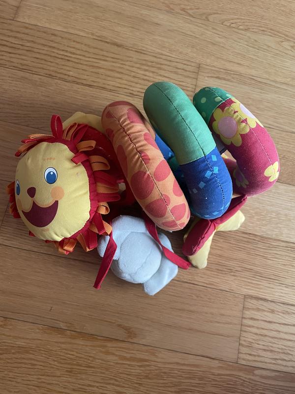 Продам мягкую развивающую дугу на ручку коляски Chicco. Яркая, с подвесными элементами и безопасным зеркальцем. Отлично отвлекает малыша во время прогулки. Состояние б/у, всё целое, без поломок.
