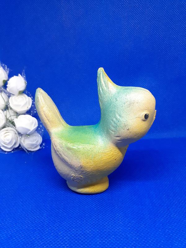 Милая маленькая птичка с хохолком, - советская резиновая игрушка из плотной литой резины, покрытой эмалями, выпуска Копычинского производственного объединения по выпуску резиновых игрушек (г. Копычинцы Тернопольской области, Украина), 60-е годы. Маленькая (8,5 × 8,5 см), имеет обтекаемую форму, ее удобно держать маленькой ручкой, можно грызть, не поранившись. Состояние отличное. Игрушка маркирована, имеет оттиск клейма (птичка, мне напоминает индюка) и цены. В Копычинцах выпускали массу интересных и очень самобытных игрушек. Точно так же как и игрушки Красного треугольника они имеют свой колорит и очень узнаваемы!