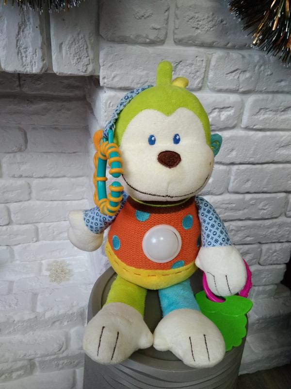Цікава, яскрава мавпочка для Вашого маляти. Іграшка має два прорізувачі для зубчиків. Можна причепити на каляску. Дивіться інші мої лоти.