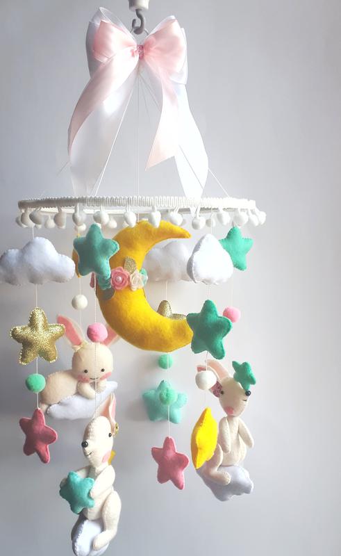 Яркий и одновременно Нежный мобиль идеальный подарок для новорождённого малыша на крестины, выписку с роддома. Мобиль сделан вручную с качественных гипоалергенных материалов.Для работы использую корейский фетр, наполнитель-холофайбер. Все игрушки сделаны с любовью!!! Цена указана за основу(круг) с игрушками !!! Крепление на кроватку и музыкальный блок не входят в стоимость мобиля!!!