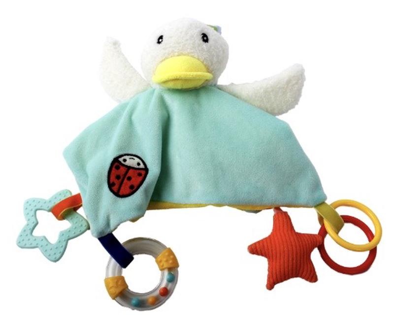 Многочисленные впечатления, стимулы и стимулы способствуют развитию мозга в раннем детстве. Чем разнообразнее и увлекательнее опыт, тем лучше игра влияет на процесс обучения, а также на веселье и радость ребенка. Activity Duck был разработан, чтобы сделать это игривое открытие как можно более разнообразным. Он призван пробудить любопытство малышей с помощью различных игровых функций. Activity Duck может многое предложить. На мягком полотенце есть зеркало, писк, погремушка, потрескивающая фольга и кусочек. Это активирует не только прикосновения, но и другие чувства малышей. Утка для активного отдыха также подходит для путешествий благодаря С-образному кольцу для легкого крепления. Младенцы могут играть с одеялом в любое время. По заявлению производителя, товар годен уже после рождения. Ключевые данные с С-образным кольцом для легкого прикрепления - идеально подходит для разнообразных игровых функций, которые можно обнаружить на ходу: зеркало, скрипящий элемент, погремушка, потрескивающая фольга, кольцо для захвата, элемент укуса, чтобы ребенок мог схватить и почувствовать. Мягкое одеяло со скрытым зеркалом Рекомендуется возраст: от 0 лет