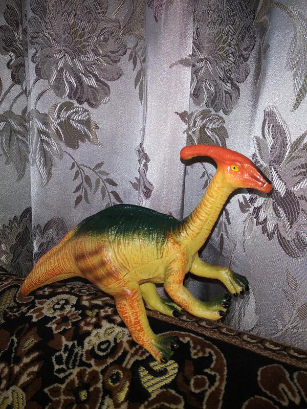 Резиновый динозавр средней жёсткости,при желании ребенок может немного изгибать шею,хвост и лапы.
