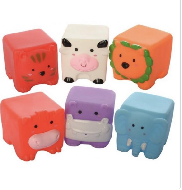 Набір тварин для купання складається з 6 фігурок тварин, які порадують малюка своєю яскравою і незвичайною зовнішністю. Іграшки ідеально підходять для ігор у воді. По-перше, вони можуть повноцінно плавати у ванній. По-друге, стан їх матеріалу «не страждає» від впливу води і вологи. По-третє, фігурки звірів відрізняються отворами в роті, через які під час ігор може бризкати водичка. Всі кубики невеликого розміру, це дозволяє їм ідеально поміщатися в руку малюка. Іграшки безпечні для дитини, оскільки не мають деталей, які могли б поранити пальчики крихти. Зроблено набір з високоякісного вінілу - міцного, довговічного і екологічно чистого матеріалу. Ігри з кубиками не тільки веселі, але і корисні для дитини. Вони покращують сприйняття кольорів, моторику рук, увагу і координацію рухів. Фігурки підходять для гри не тільки в воді, а й просто в дитячій кімнаті малюка. Їх можна ставити один на одного, вибудовуючи пірамідою. Іграшки приємні на дотик, мають рельєфну поверхню для розвитку сенсорного сприйняття. У наборі: гумові іграшки-пирскавки - 6 шт. Розміри іграшок: 5.5х5.5 см. Висота іграшок: від 5 до 6 см. Виготовлено з полімерних матеріалів, гуми. Відповідає вимогам безпеки продукції. Для дітей з 12-ти місяців.