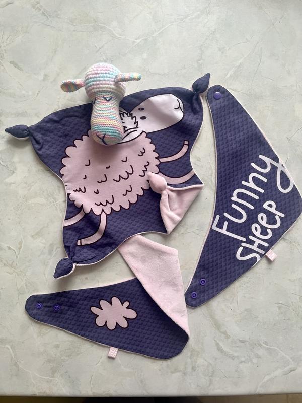 Подарочный набор - Комфортер и 2 слюнявчика- бандана. Комфортер рекомендуется положить на грудь во время кормления, чтобы он впитал запах мамы. Комфортер поможет уснуть вашему малышу спокойно в ощущении рядом мамы в любом месте. Слюнявчик- бандана: двухсторонний, используется как слюнявчик( гладкой стороной) и как шарфик( велюровой). Выполнено из натуральных материалов:100%хлопок, хлопковый велюр, гипоалергенный холофайбер. Рекомендации по уходу: стирать до 40С, деликатный режим, велюр не утюжить.