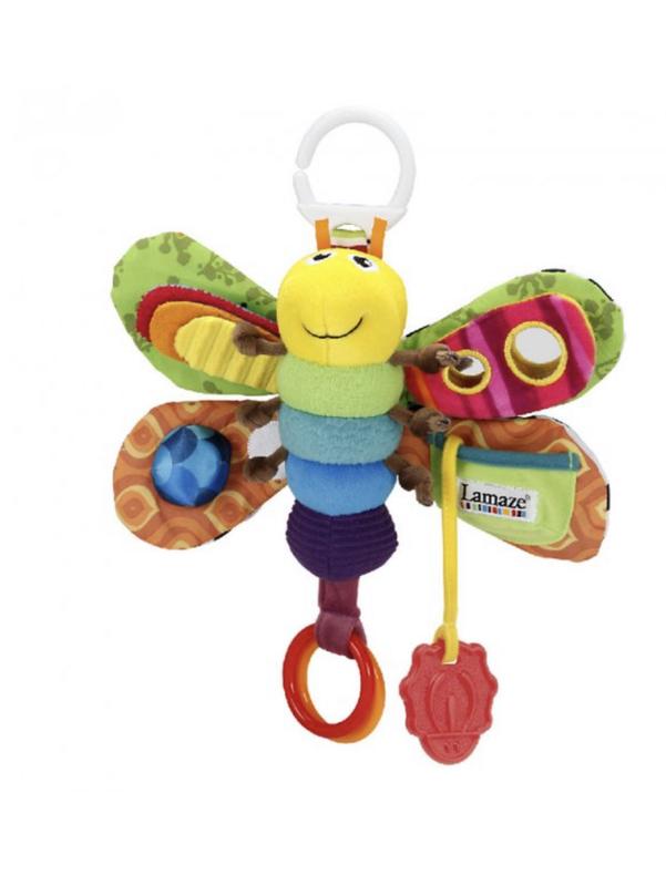 Разноцветный Мотылек Фредди надолго увлечет вашего малыша. На крылышке расположена игрушка: зеркальце, грызунок и пищалка. С помощью специального пластикового карабина мотылька можно пристегнуть к кроватке или коляске. Игрушка стирается в стиральной машинке.
