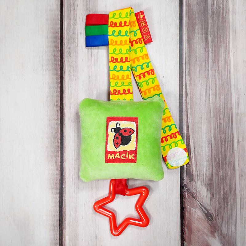 🕯️ Возраст: 3 мес.+ 📏 Размеры: - подвески: 28*8*3 см (защелка), 40,5*8*3 см (раскрыта); - квадрата: 8*8*8 см; - шнурка для подвешивания: длина 26,5 см. 🧰 Материал: хлопковая ткань, разнофактурные материалы, швейная фурнитура, звуковые элементы; наполнитель холлофайбер. 🛠️ Производитель: Масик.