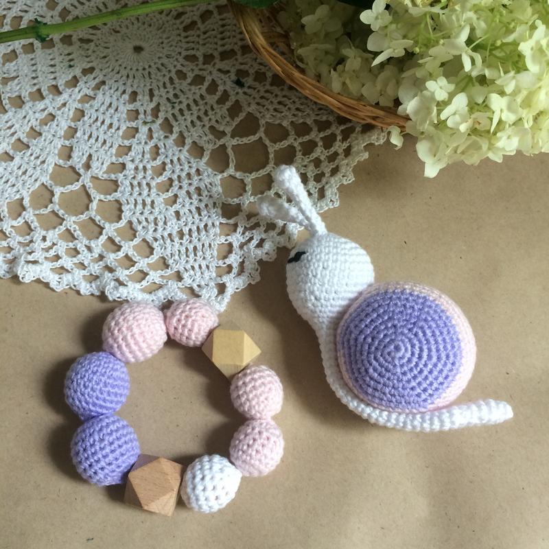 Вязана іграшка -бряскальце равлик + браслет гризунець