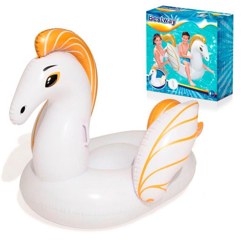 С такой великолепной надувной игрушкой обычное плаванье в бассейне превратится в увлекательную игру! У этого пегаса на спине есть местечко, на которое можно усадить кроху, а на шее -- две надежные ручки из пластика, чтобы случайно не соскользнуть. Сиденье очень удобное, а крылья выполняют роль бортиков. Особенности: - Винил высокого качества; - Стильный дизайн; - Эргономичное сиденье; - Надежные ручки; - Размер: 159х109 см.