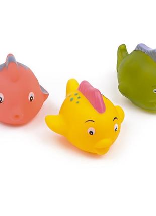 Водні процедури викликають у малюка негативні емоції? Для того щоб зробити цей процес яскравим і цікавим досить купити набір «Рибка»! Він складається з трьох різнокольорових фігурок рибок. Скільки захоплення ви зможете побачити в очах вашої дитини, адже поруч з нею будуть плавати, нехай і несправжні, але все- таки, представники водного світу. За допомогою цієї іграшки малеча зможе відправитися в подорож і познайомитися ближче з-підводним світом і його мешканцями. Тепер ви в жодному разі не зможете витягнути свою дитину з води, адже вона вимагатиме продовження гри. При стисканні іграшок, буде звучати писк. Під час купання у діток розвивається уява, координація, дрібна моторика рук, зорове сприйняття. Іграшки виготовлені з якісного пластику, рекомендуються для гри дітям до і після 3 років. Комплектація: іграшки рибки - 3 шт.
