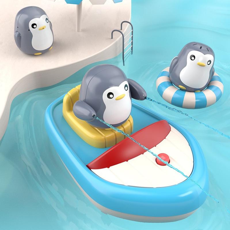 Игрушка фонтан для ванной лодочка с пингвинами
