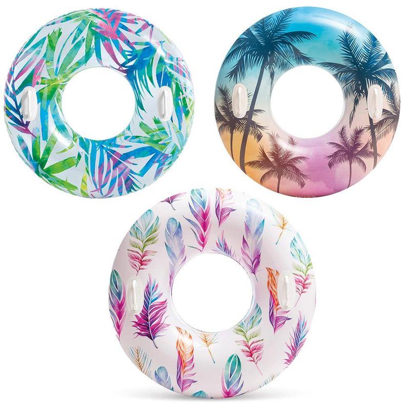 Большой надувной круги самой красочной расцветки представляет фирма Intex. Дизайн очень смелый и оригинальный, благодаря чему популярность этих моделей невероятно высока! Круг оснащен удобными пластиковыми ручками. Материал: прочный винил. Предназначен для детей от 9 лет и взрослых. Характеристики и комплектация товара могут изменяться производителем без уведомления.