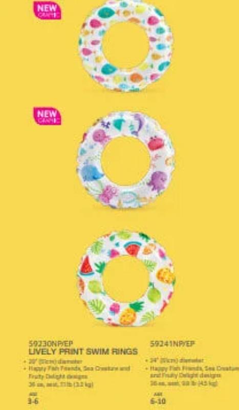 Розміри / габарити - Довжина (см):61 см - Ширина (см):61 см Упаковка:Коробка Вік:від 3 років Дитячий надувний круг 59241 NP «Строкатий» від всесвітньо відомої торгової марки Intex точно сподобається вашій дитині, так як він виконаний в яскравих соковитих кольорах. Надувний круг - незамінний аксесуар під час відпочинку на узбережжі або біля басейну. Гарний плавальний аксесуар допоможе дитині подолати страх води і навчить його самостійно триматися на водній гладі. Модель представлена в 3-х різних варіантах, які відрізняються візерунком і забарвленням. Прийшовши з таким колом на пляж, ваш юний плавець точно буде в центрі уваги. Дитячий коло діаметром 61 см виготовлений з високоякісного вінілу, товщиною в 0,25 мм і призначений для діток 3-6 років. Максимальне навантаження: 80 кг.