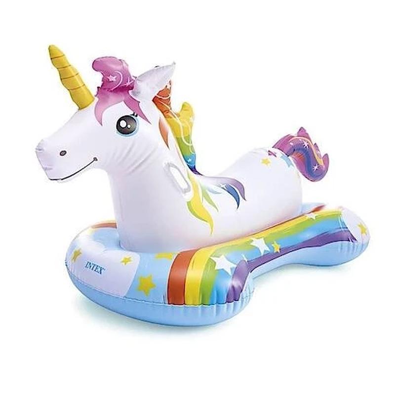 Надувной плотик игрушка-наездник 163х86 см "Единорог" от 3 лет Надувная игрушка-наездник для плавания "Единорог" - игрушка для маленьких покорителей водных пространств. игрушка изготовлена из прочного ПВХ материала, устойчива к незначительным повреждениям, а следовательно, слуг беспокойтесь о безопасности малыша: плотные резиновые ручки не дадут рукам ребенка соскользнуть в самый ответственный момент, а широкая основа не даст опрокинуться. Характеристики: Размер: 163х86 см. Допустимый вес: 40 кг.