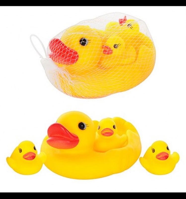 Набор резиновых игрушек-пищалки утки для купания: В комплект входит большая утка-мама и три маленьких утенка.Игрушки издают негромкий писк при нажатии.Предназначены для развлечения ребенка во время купания.Помогают развивать моторику рук.Изготовлены из резины или ПВХ.