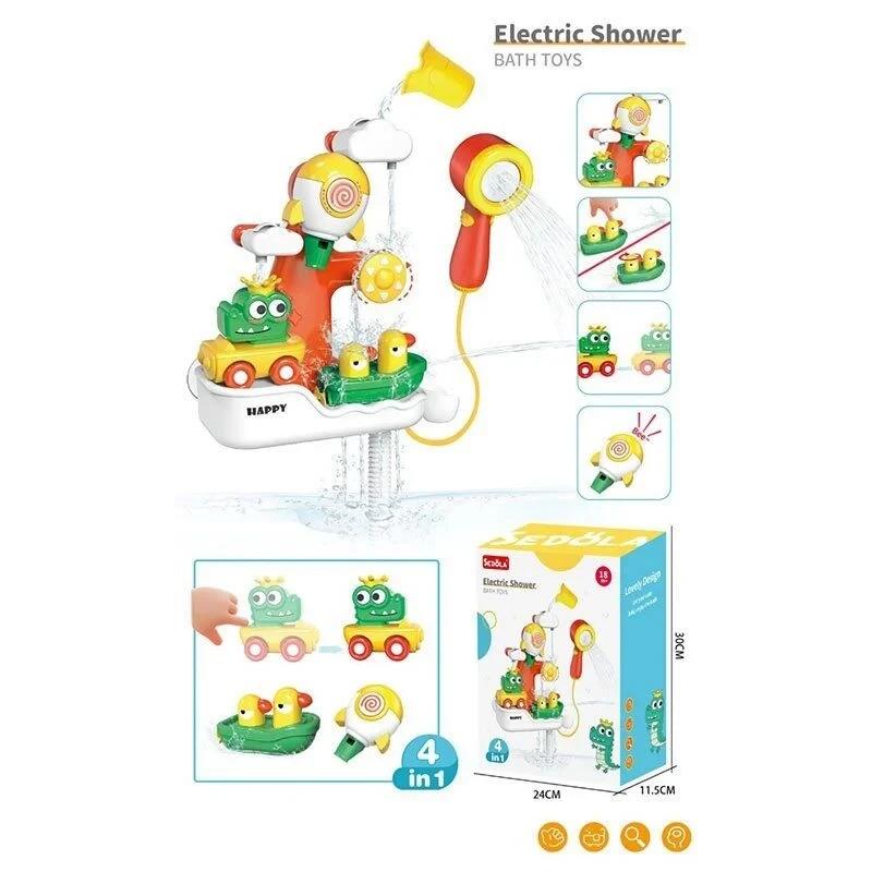 Гра для ванни перетворює купання на справжню водну пригоду. Іграшка подає струмінь води з лійки, запускає рух елементів і заохочує малюка взаємодіяти з кожною деталлю. Кумедні фігурки плавають, крутяться та «оживають» під час гри, роблячи процес купання веселим і захопливим. Така гра допомагає дитині звикнути до води, розвиває координацію та дарує позитивні емоції щодня. Особливості: - тип живлення - 3 батарейки “АА” (не додаються); - машинка з млином, потрапляння в неї води обертає очі крокодила; - ракета-свисток; - кораблик з пташками: натискання на голову випускатиме воду; - заводний механізм на кораблику: обертання пропелера; - гнучка душова лійка; - автоматичний принцип роботи; - гідроізоляція; - присоски у комплекті. Матеріал : пластик Виробник : toys