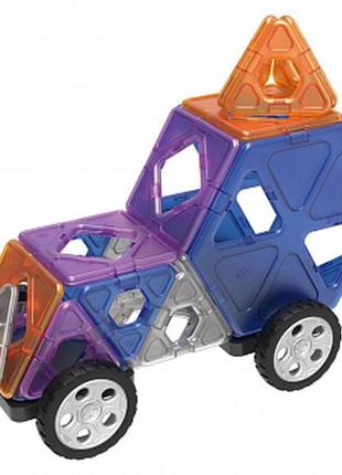 гра розвиває спритність, креативність і дрібну моторику компоненти, які можна будь-яким чином поєднувати для створення простих або складних 3D-моделей з високоякісним прозорим виглядом поверхні легко з’єднувати та знову роз’єднувати численні варіанти конструкції для нескінченного задоволення сумісний із доступними у продажу наборами магнітів 24 штуки: 10 квадратних тарілок, 10 трикутних тарілок, 2 осі з колесами, 2 шестикутники колір: мультиколір