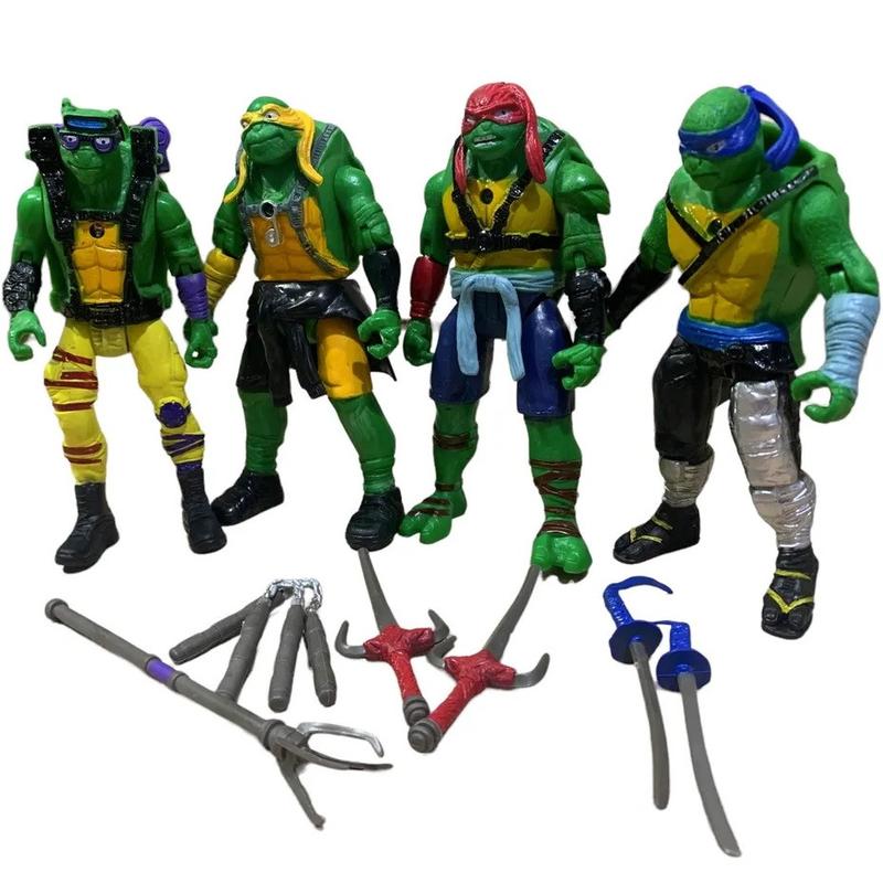 Черепашки Ниндзя Микеланджело, Рафаэль, Донателло, Леонардо - это герои одноименных мультфильмов и киносериалов, представленные в виде фигурок с аксессуарами - боевым оружием, присущим каждому герою. Игрушки с подвижными гибкими конечностями имеют специальными креплениями для удержания оружия, а так же игрушки имеют подсветку. Высота фигурок 16 см. Размер упаковки 44 * 6 * 33 см.