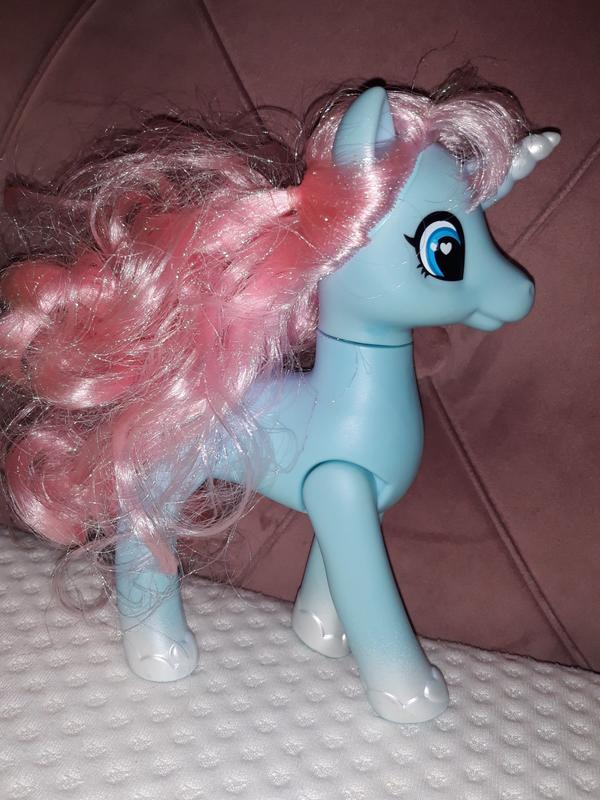 ZURU Sparkle Girlz Baby Unicorn – идеальный друг для ваших волшебных приключений. В отличном состоянии. На волосах есть магазинная резинка Расчешите им волосы и позаботьтесь о них. Можно создать так много причесок – сделать хвостики или закрутить пучок. Он любит солнечный свет, радугу и все блестящее. Голова единорога двигается из стороны в сторону, чтобы играть было еще веселее. Начните создавать свою сказку с самыми симпатичными единорогами. Единорог высотой 17 см. Подходит для детей от 3 лет. Ноги двигаются.