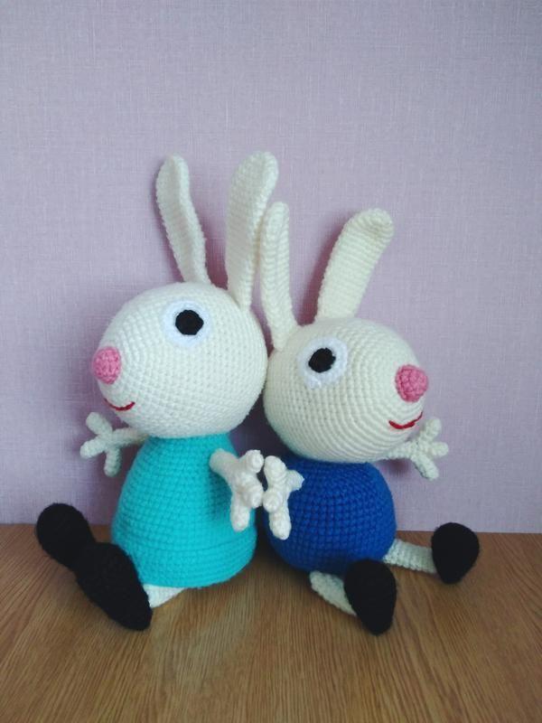 Игрушка вяжется из гипоалергенной пряжи, наполнитель - холлофайбер. Все детали пришиты, можно будет стирать в стиральной машине на деликатном режиме. Любимый персонаж станет лучшим другом! Цена указана за одного кролика Дополнительные характеристики: Пол: Для девочек Пол: Для мальчиков Товар под заказ