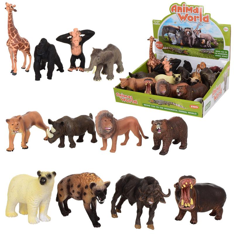 Детям от 3 лет фигурки диких животных 12 видов Материал - ПВХ Размеры фигурок: Жираф - в высоту 14,5см в ширину - 8,5см Обезьяна - в высоту 9см в ширину - 7,5см Бегемот - в высоту 7,5см в ширину 9см Слон - в высоту 6,5см в ширину 12см Лев - в высоту 7,5см в ширину 12,5см Белый медведь - в высоту 7,5см в ширину 10см Гиена - в высоту 6,5см в ширину 10,5см Носорог - в высоту 7см в ширину 12,5см Буйвол - в высоту 6,5см в ширину 10,5см Бурый медведь - в высоту 6,5см в ширину - 10см Горилла - в высоту 8,5см в ширину 7,5см Львица - в высоту 10см в ширину 12см Без индивидуальной упаковки Китай