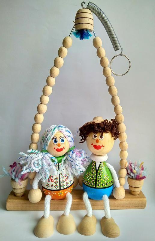 Романтична парочка, лялька в етнічному вбранні, ручна робота, ручна розпис, дерев'яні ляльки, подарунок, сувенір, лялька на гойдалці. Подарунковий набір : хлопчик, дівчинка,гойдалки. Лялька ~ 14см Висота гойдалок ~ 25-26см Ширина ~ 19-21см В роботі використані тільки водорозчинні фарби і лаки. Романтична парочка хлопчик і дівчинка на гойдалці - хороший подарунок для будь-якої вікової категорії . Чудово доповнять будь-який інтер'єр. Через кільце, прикріплене до пружинці, можна повісити сувенір на видному місці або просто поставити гойдалки на поличку. Всі деталі виточені вручну. Ляльки легко знімаються з гойдалок і можуть використовуватися самостійно. Лялечки, розписані з любов'ю і натхненням, обов'язково принесуть у Ваш будинок гарний настрій. Дивлячись на цю милу парочку, яка розгойдується на гойдалках, неможливо стримати посмішку. Посміхайтеся, будь ласка, частіше !!!