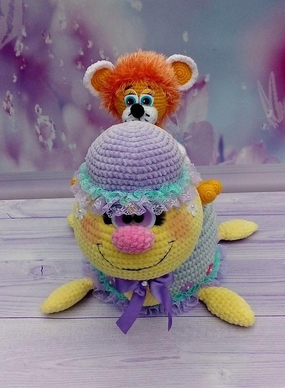 черепашка связана из плюшевой пряжи не вызывающей аллергии не для интенсивных игор,сухая чистка или ручная стирка,наполнитель холофайбер который быстро сахнет и принимает свою форму,высота 36см,окружность панциря по низу-71см,высота панциря-20см Дополнительные характеристики: Пол: Для девочек