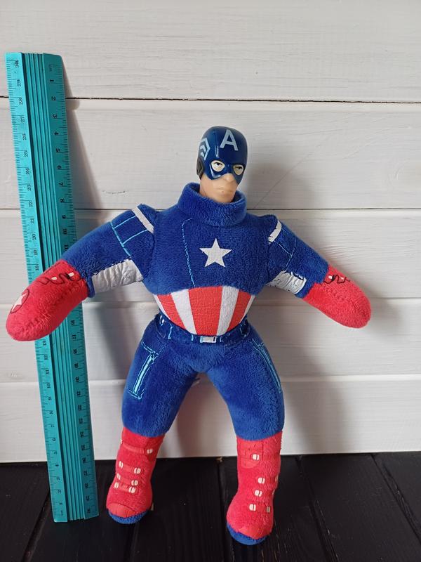 М'якотілий капітан Америка. Голова пластик. Висота 26 см. Під руками є тріщини на фарбі