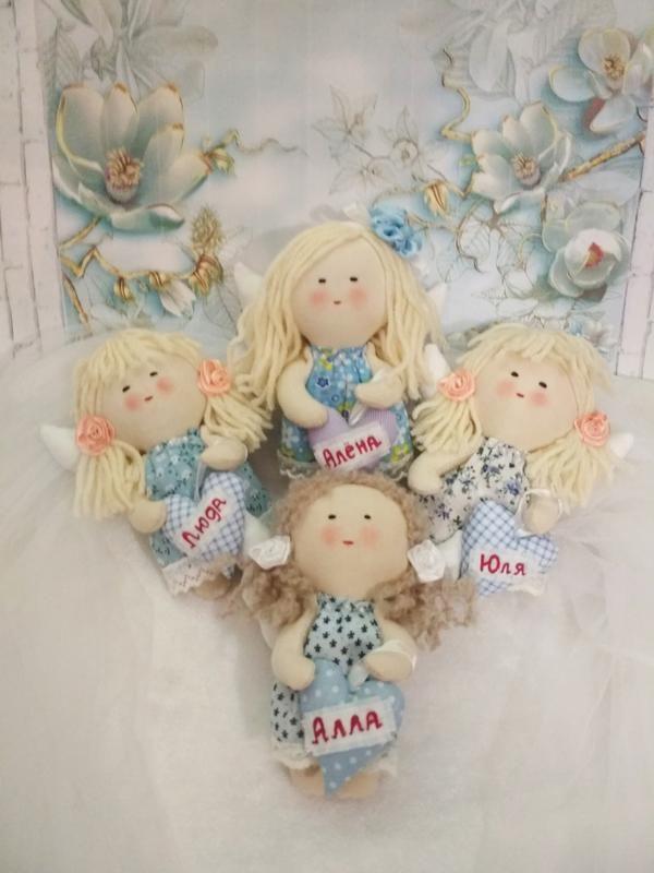 Лялечка ангелок іменна.Незвичайний подарунок.Нікого не залишить байдужим. На сердечку замість імені можна вишити/намалювати побажання.